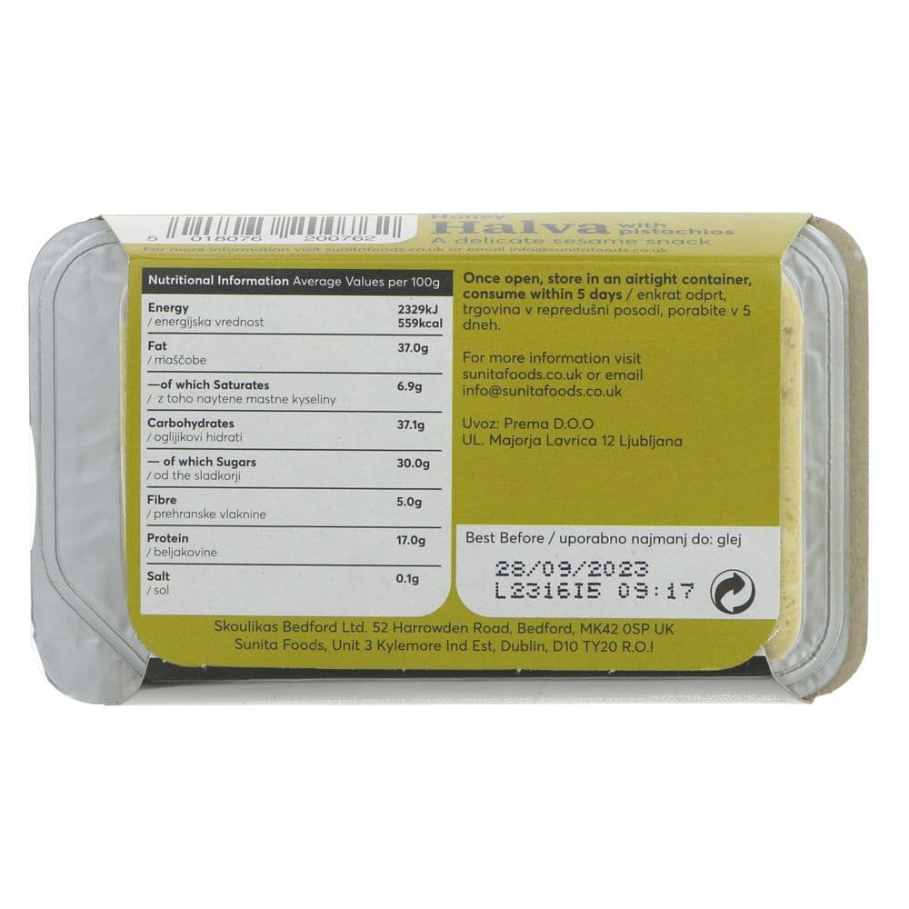 Ground sesame seeds (47%), honey (43%), pistachios (10%)